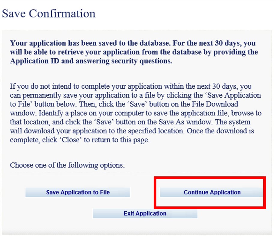 Once you have clicked “Sign and Submit Application” you will be unable to make changes. Electronically sign by clicking the button below after you have reviewed the information in your application and determined that it is correct. After signing the application, click “Next” to continue with the application