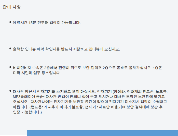 다음 포스팅에서~~ 비자 발급비용 입금하는 부분 및 인터뷰에 대한 내용 정리해서 올리겠습니다~~;;;